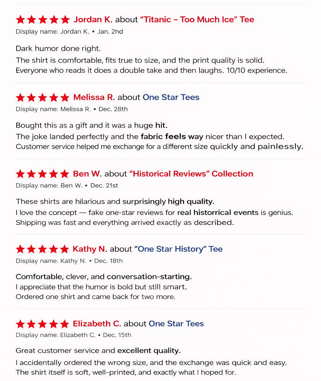 At One Star Tees, we treat every customer like part of the gang. You can count on quick replies, smooth resolutions, and genuine human replies every step of the way.